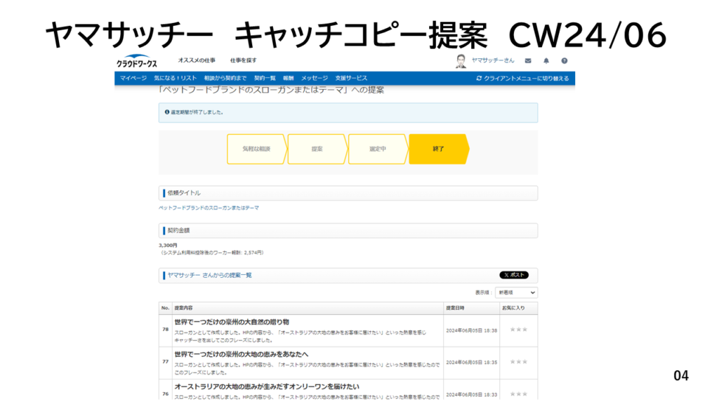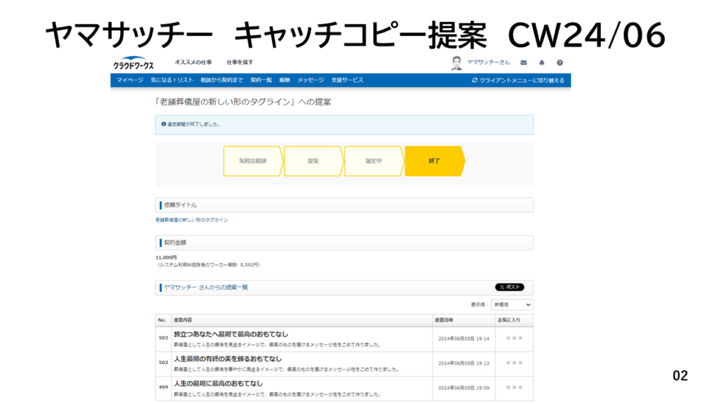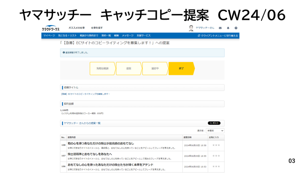 クラウドワークス提案実績