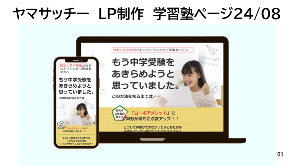 広島の学習塾 浜崎アカデミー様のHP内の小学生向け塾生募集ページをLP風に作成しました。